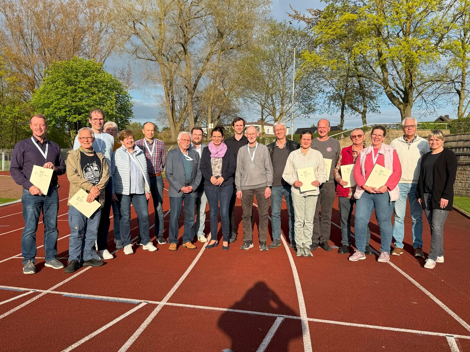 Im frisch renovierten Versammlungsraum des Ludwig-Jahn-Stadions zeichneten Stadt und Stadtsportverband Herford die langjährig aktiven Sportabzeichenabsolvent*innen aus. Der Austausch innerhalb der Familie des Sports stand dabei wie immer im Vordergrund. Dennoch freuten sich alle Geehrten über Ihre Urkunden, die von Bürgermeisterin Anke Theisen überreicht wurden. Dazu gab es noch eine Medaille bzw. ein kleines Präsent vom SSV.